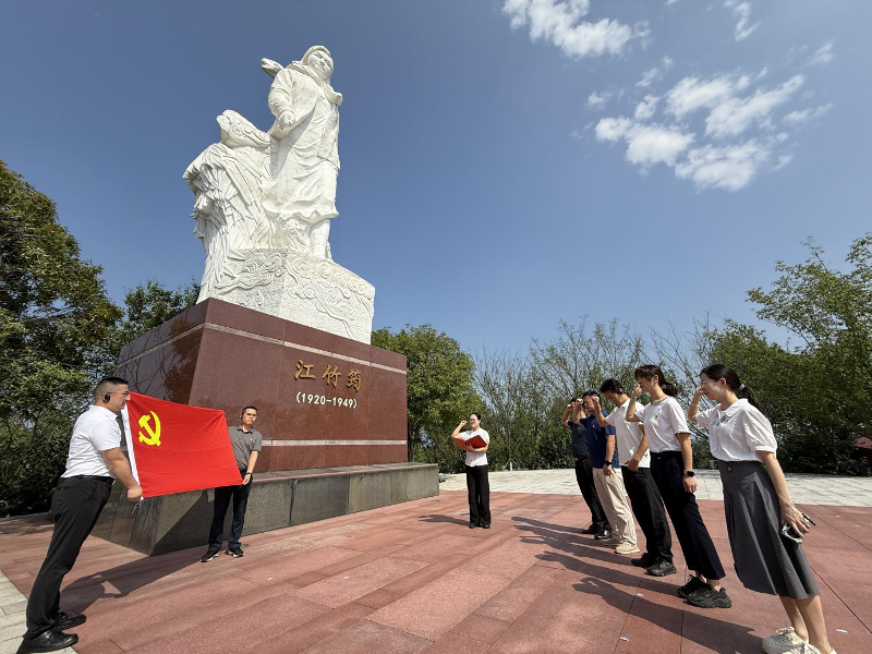 在江姐故里红色教育基地,全体党员依次参观了江竹筠烈士生平事迹展馆和故居。一幅幅珍贵的历史照片、一件件经历岁月洗礼的文物,生动再现了江竹筠烈士从成长求学、投身革命直至英勇就义的光辉一生。“竹签子是竹子做的,共产党员的意志是钢铁”的铮铮誓言,深深震撼了在场每一位党员。参观过程中,全体党员怀着无比崇敬的心情,瞻仰了江竹筠烈士塑像并敬献鲜花,面向鲜红的党旗,重温入党誓词,以铿锵有力的誓言,激励自己时刻牢记党的宗旨、践行共产党员的初心使命。
