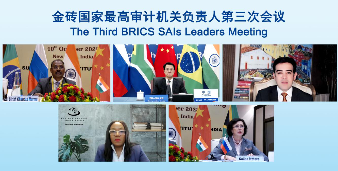 10月10日,由印度审计署主办的金砖国家最高审计机关负责人第三次会议在新德里召开,中国审计署副审计长章轲以视频方式出席会议并致辞。参加会议的有印度审计长穆尔穆、巴西审计法院院长丹塔斯、南非审计长马卢莱克、俄罗斯审计院副院长伊佐托娃。